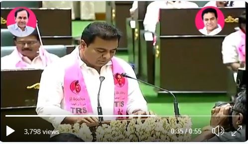తెలంగాణ రాష్ట్రంలో రెండోసారి ఎమ్మెల్యేగా కేటీఆర్ ప్రమాణ స్వీకారం చేశారు. ‘ముఖ్యమంత్రి కేసీఆర్ గారి ఆశీస్సులతో, సిరిసిల్ల నియోజకవర్గ ప్రజల ఆదరాభిమానాలతో భారీ మెజారిటితో నాలుగవ సారి గెలిచి ఈ రోజు అసెంబ్లీ లో ప్రమాణస్వీకారం చేశాను’ అంటూ కేటీఆర్ ట్విట్ చేశారు.