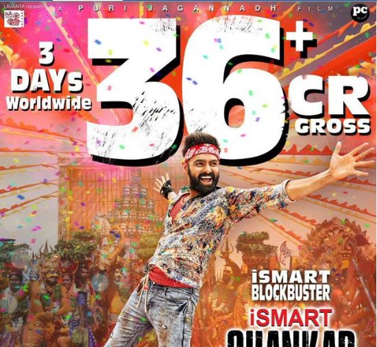 మాస్ ని మరోసారి మురించాడు దర్శకుడు పూరి. ఆయన దర్శకత్వంలో రామ్ హీరోగా వచ్చిన చిత్రం ‘ఇస్మార్ట్ శంకర్’. హిట్ టాక్ తో థియేటర్స్ లో సందడి చేస్తోంది. మూడ్రోజుల్లో ఈ సినిమా రూ.36కోట్లకిపైగా గ్రాస్ ని వసూలు చేసింది. ఈ విషయాన్ని తెలుపుతూ చిత్రబృందం ఓ పోస్టర్ ని వదిలింది. ఈ వీకెండ్ లో ఈ సినిమా కలెక్షన్స్ రూ. 50కోట్లు చేరేలా కనిపిస్తున్నాయి.