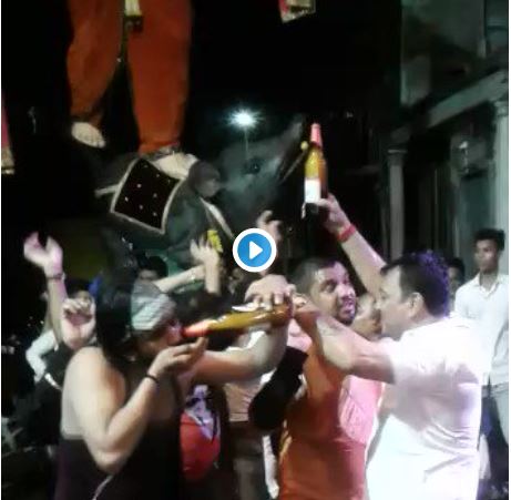 వైరల్ : గణేషుడు ముందే బీర్లు పొంగించిండ్రు.. !