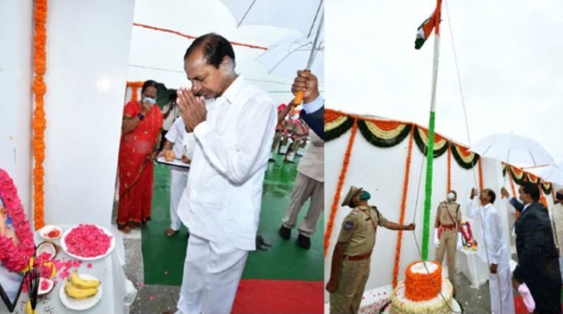 Read moreతెలంగాణలో పంద్రాగస్టు వేడుకలు ఘనంగా జరిగాయి. ప్రగతిభవన్ లో సీఎం కేసీఆర్ జాతీయ జెండాని ఆవిష్కరించారు. ఈ కార్యక్రమంలో రాష్ట్ర ప్రభుత్వ ప్రధాన కార్యదర్శి సోమేశ్ కుమార్, డీజీపీ మహేందర్రెడ్డి,
